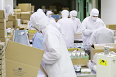 各ブランドのお客様が触れる最初の部分の作業である、包装や梱包。この作業を清潔・丁寧・正確に、衛生環境に優れた設備内で行っています。